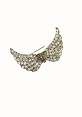 Hot Tomato Angel Heart Wings Brooch - Antique Gold / Clear Crystals