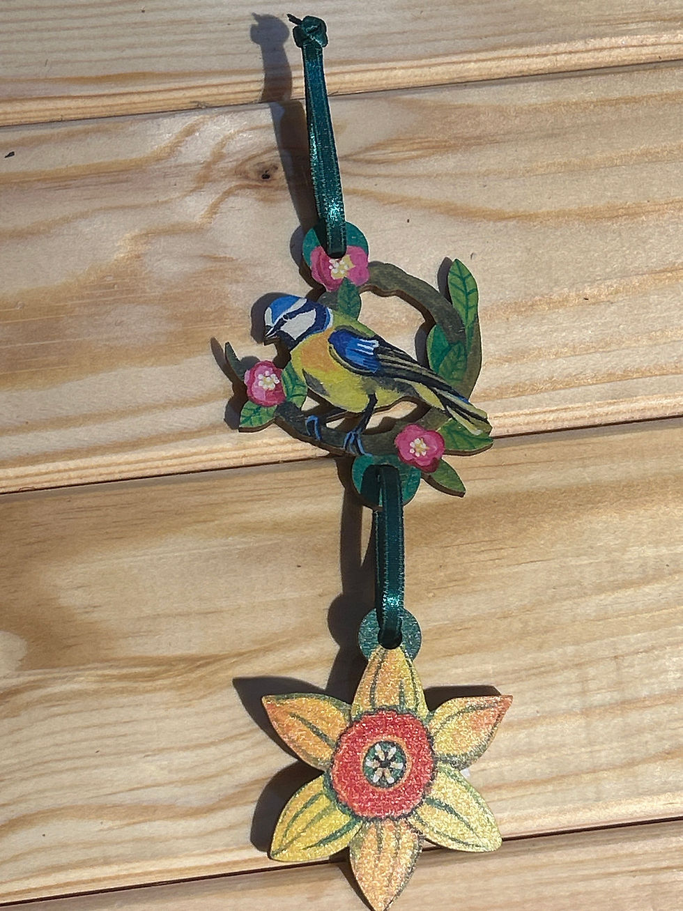 Blue Tit Two Tier Wooden Decoration